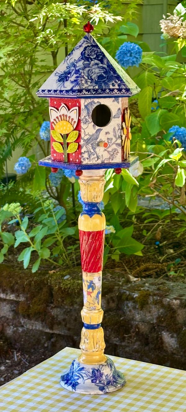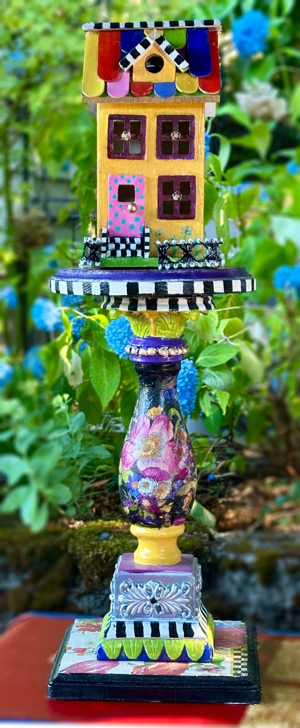 3-D Mixed Media. Materials include paper, ribbon, styrofoam,and various other mixed media items. Hand painted.