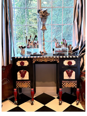 Repainted and refinished desk/makeup table. Commissions and consultation available.